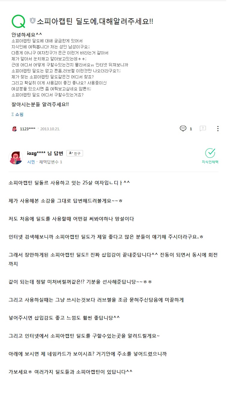 지식인에 올라온 소피아캡틴 딜도 경험담 |