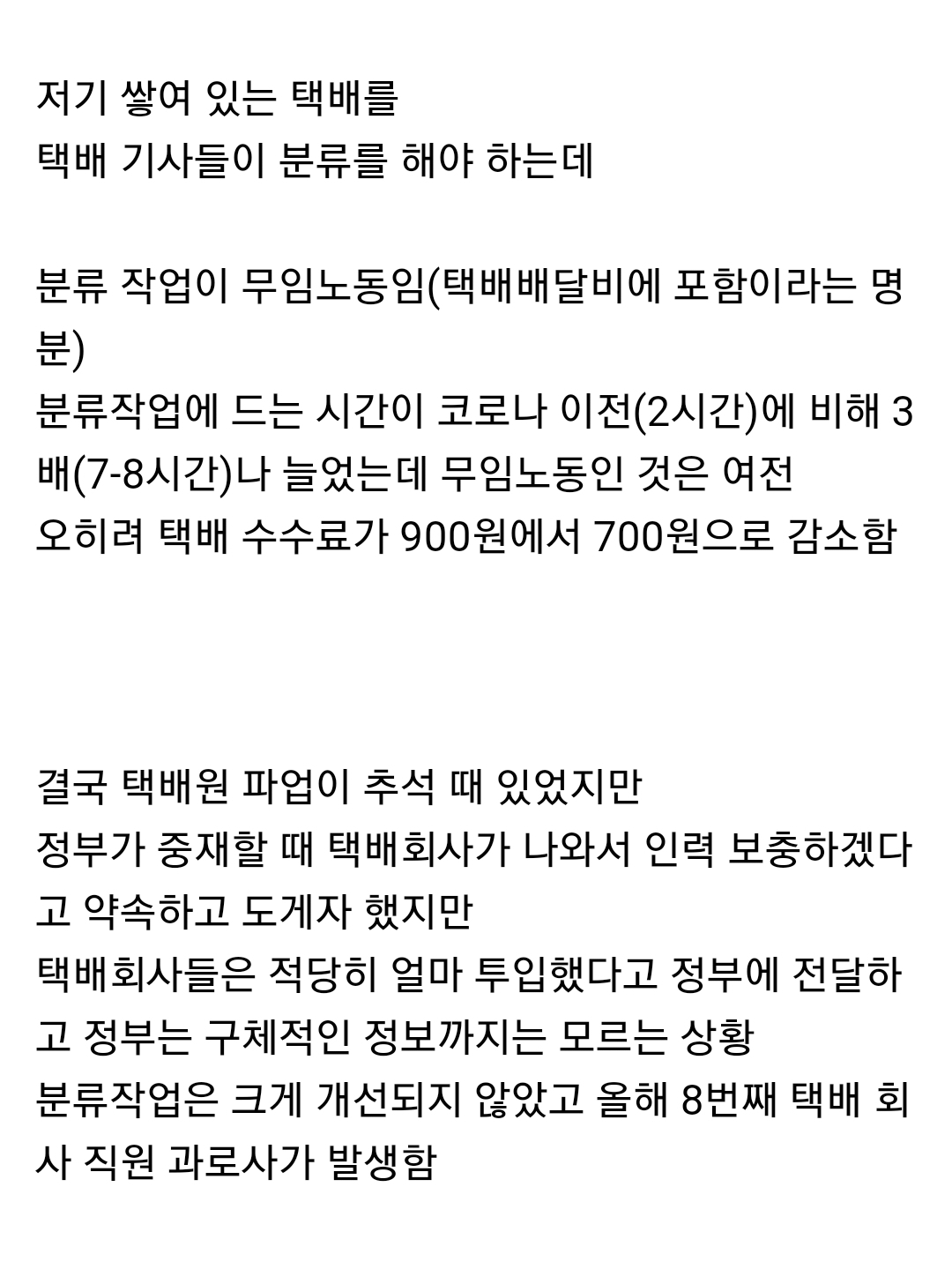 택배업계의 현재 상황...