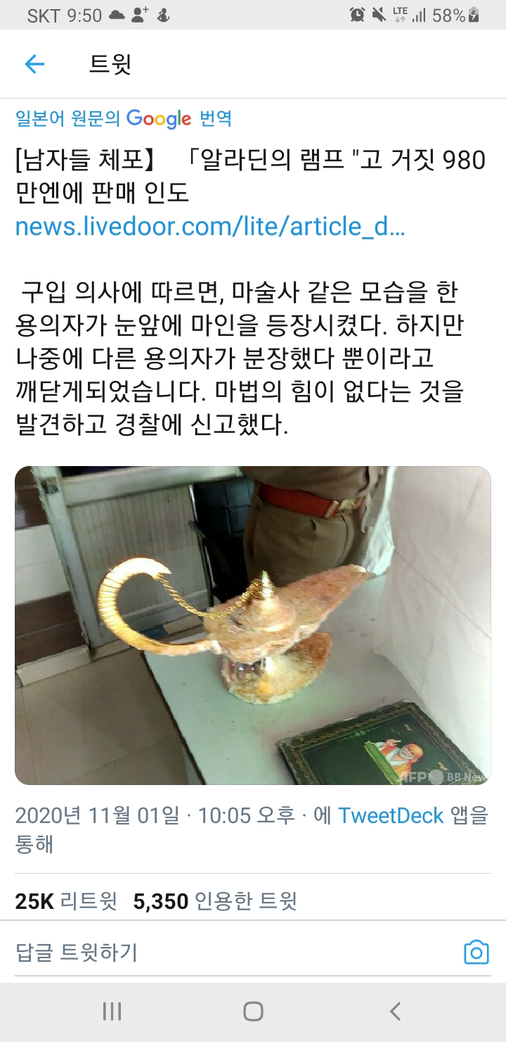 소원을 말해봐~♩♬ 난 너의 Genie야 꿈이야 Genie야 이건 뭐 소녀 시대의 노래가사도 아니고 인도의 의사라는 양반이 요술램프를 판다는 사기꾼에게 속아서 1억원에 팔다가 걸림....