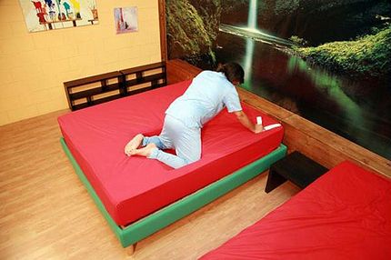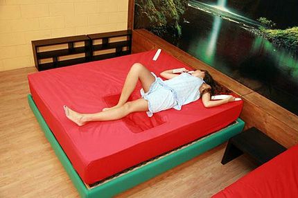 215만 원 정도의 매트리스 속에는 교묘하게 설계된 두 구덩이가 마련돼 있다. 열정적인 남성이 두 무릎을 고정할 수 있는 공간이다.